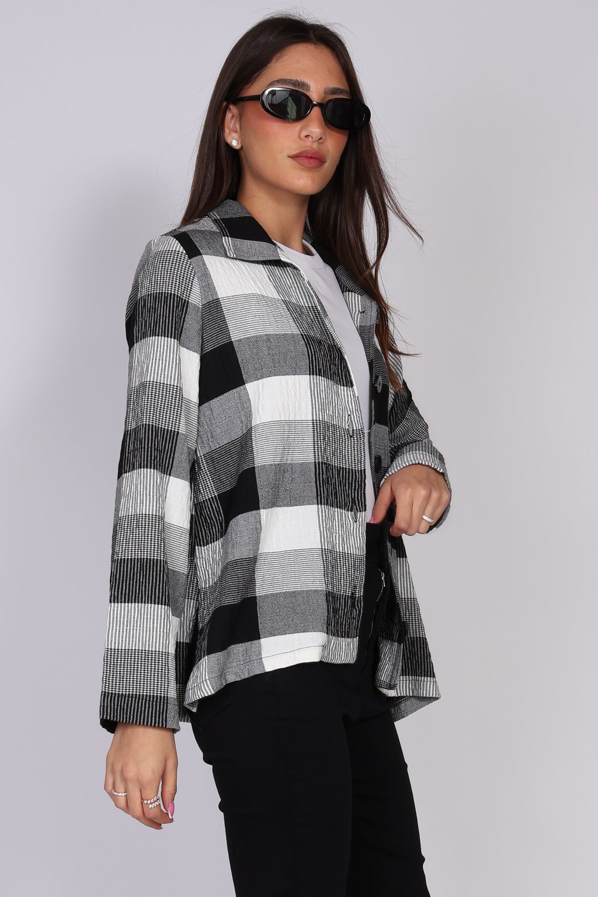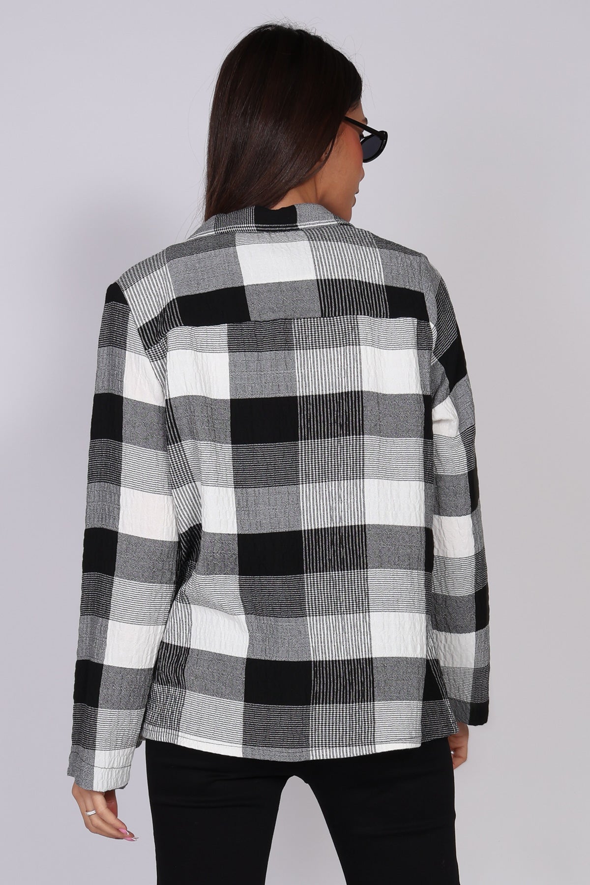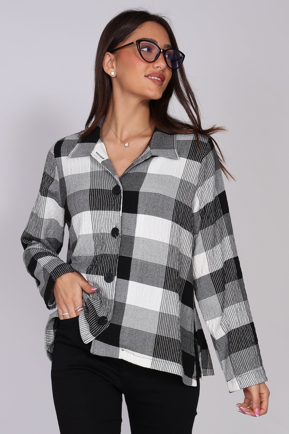 - חולצת כפתורים משובצת בשחור לבן