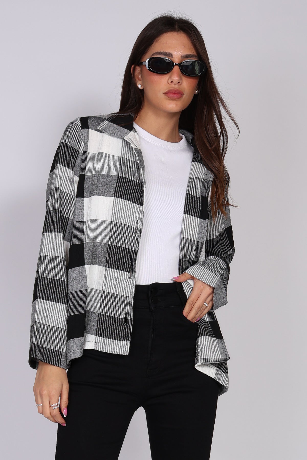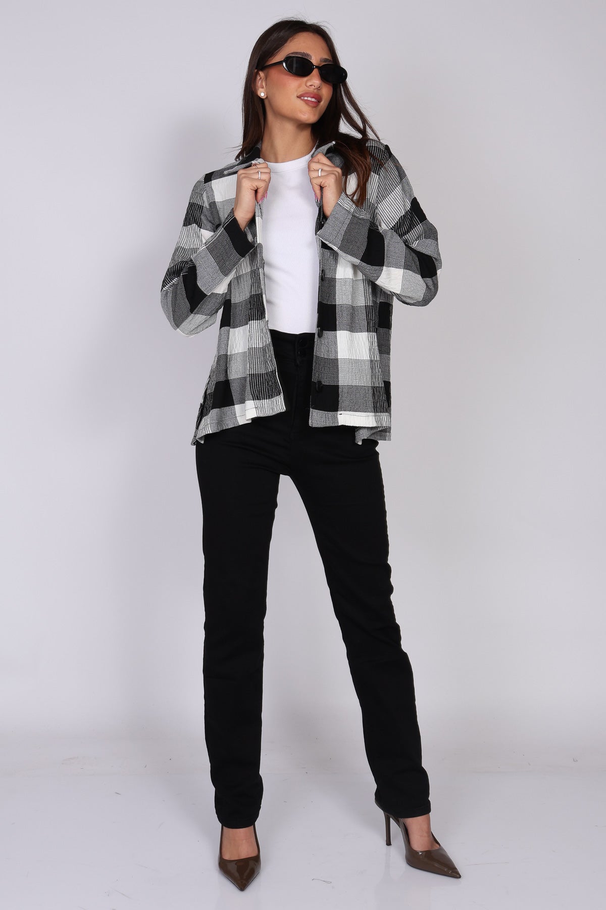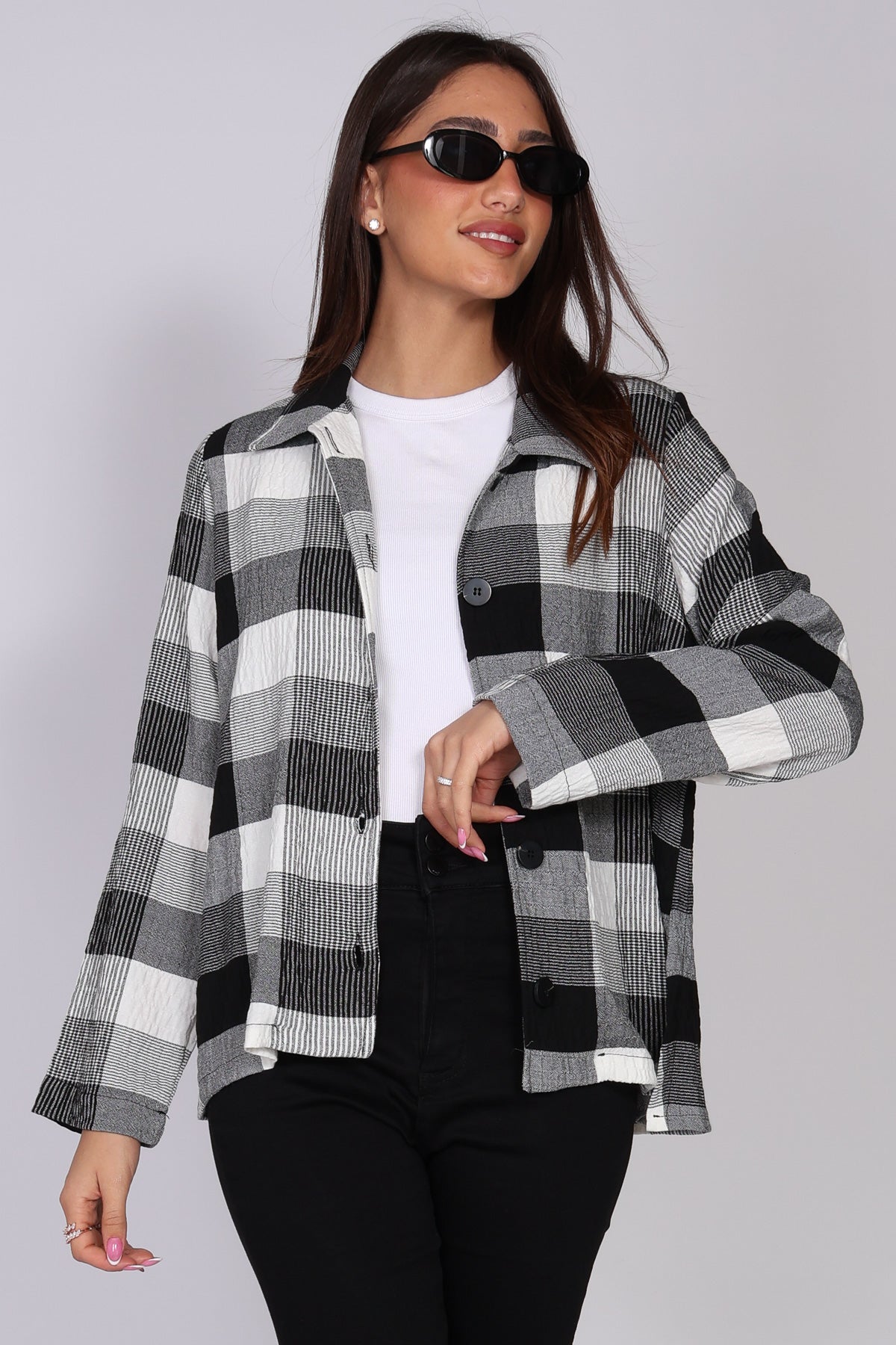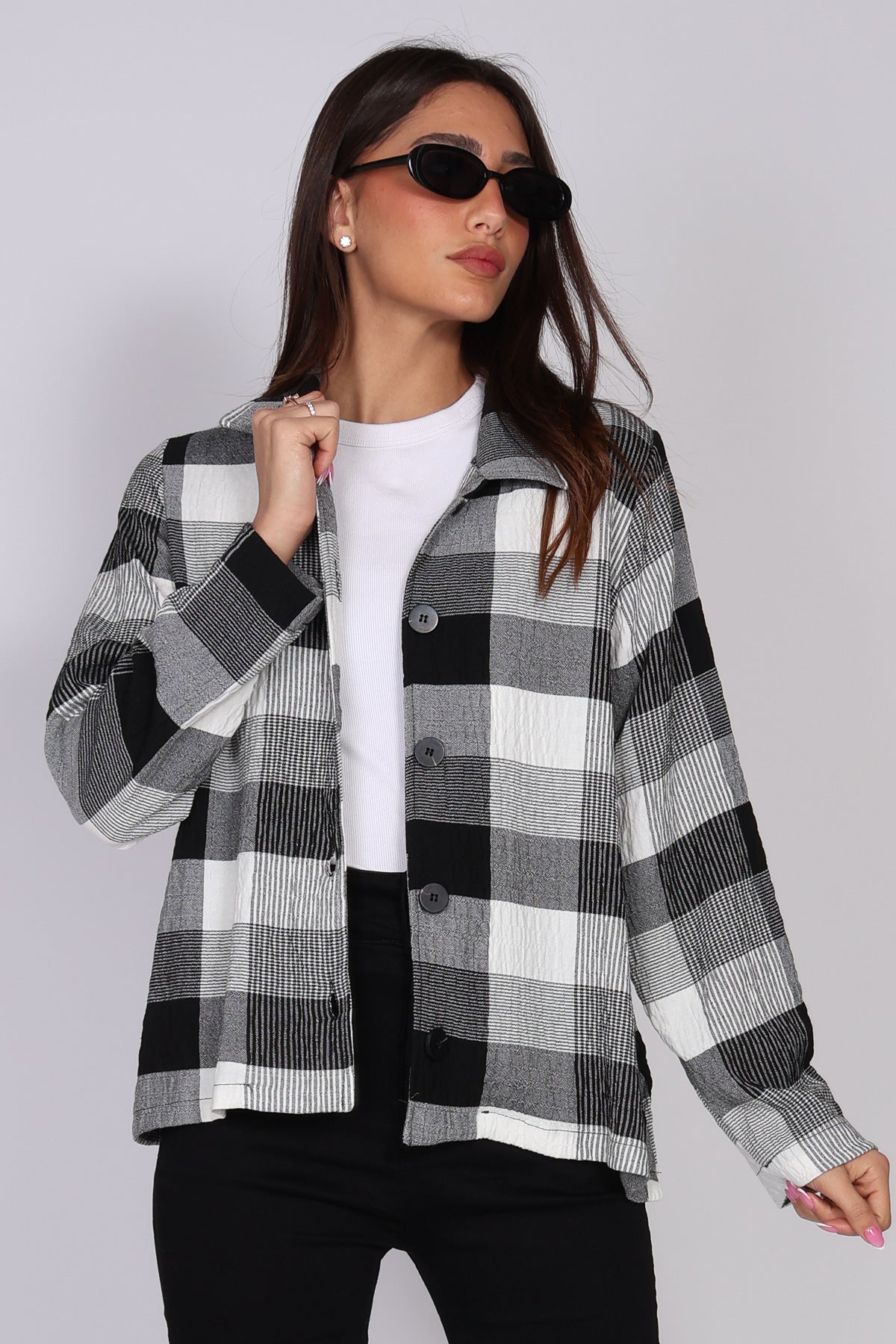 - חולצת כפתורים משובצת בשחור לבן
