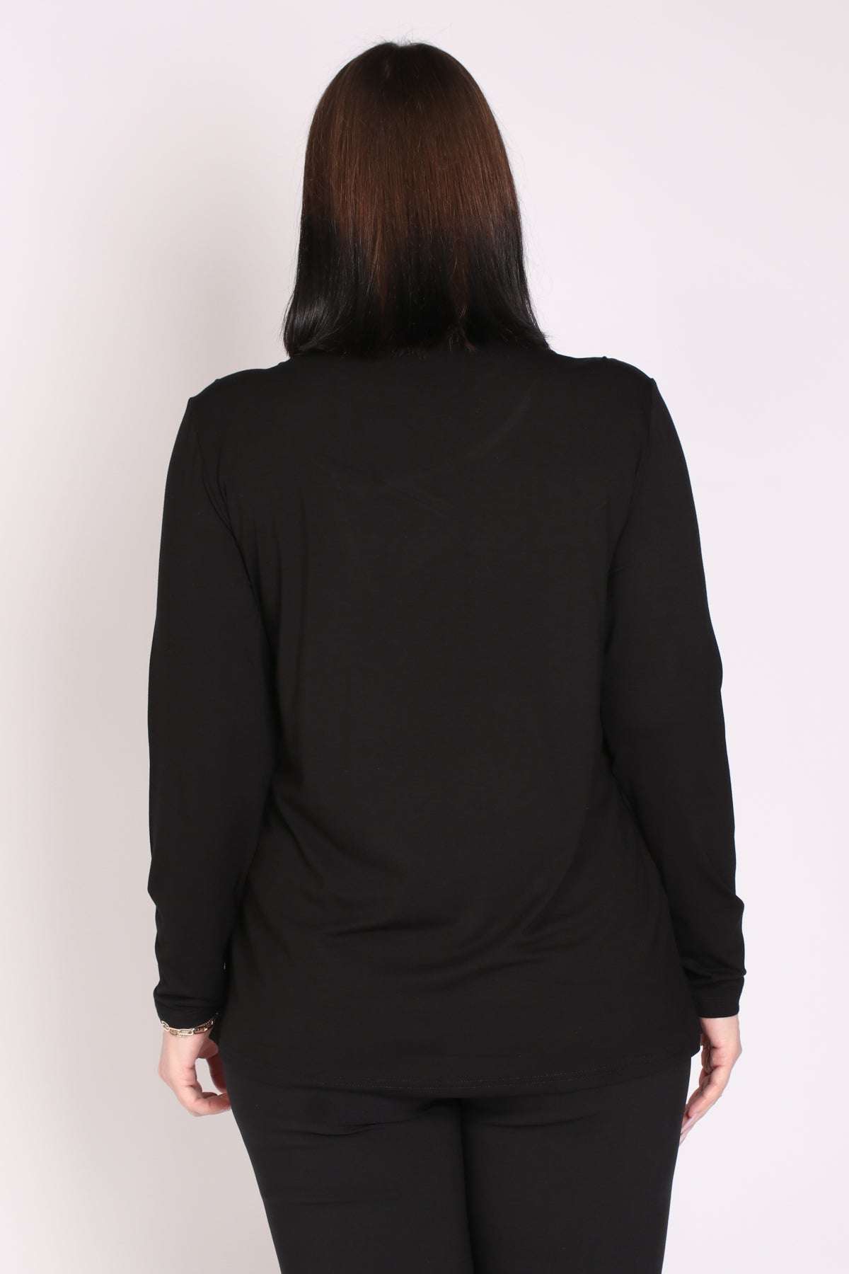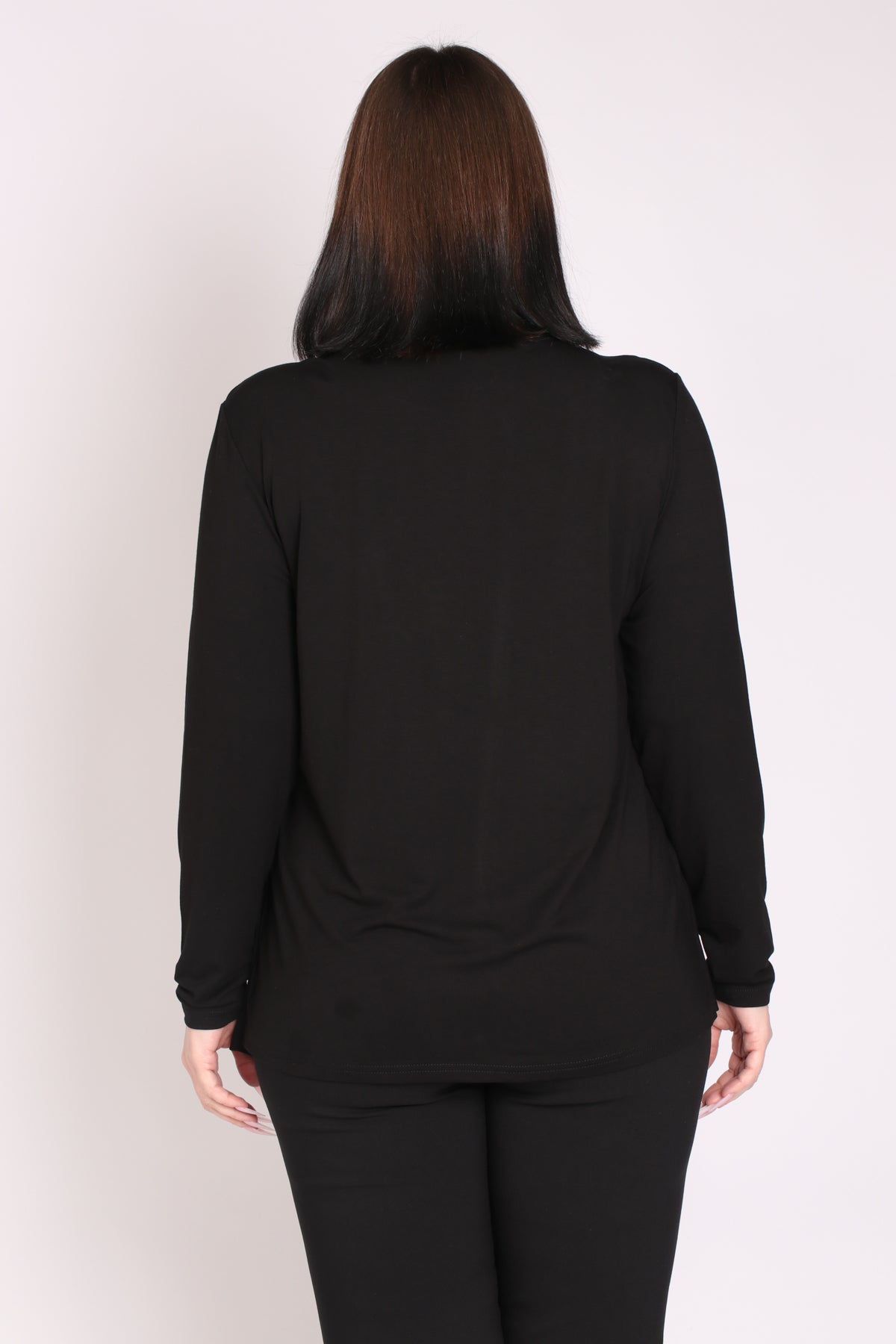 - מפתח צוואר עגול, שרוולים ארוכים
