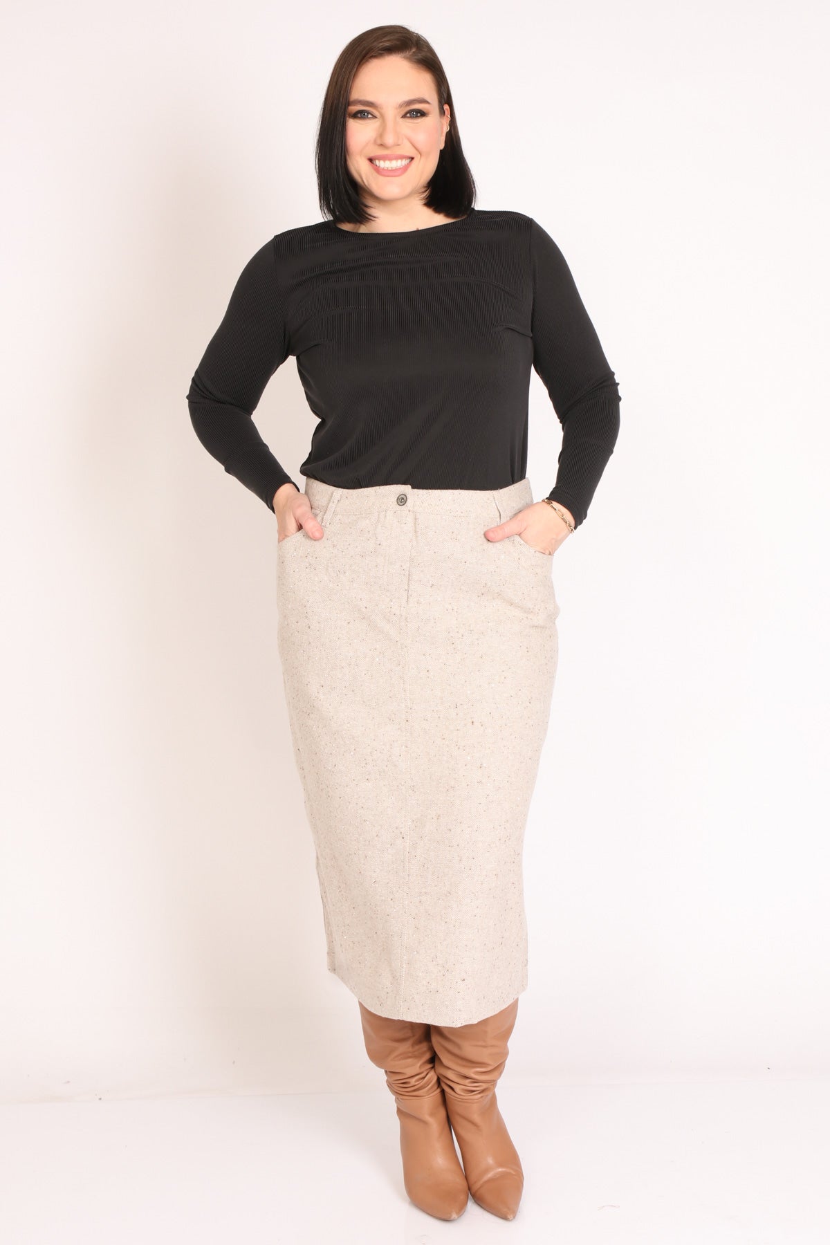 - חצאית בגזרה ישרה מבד אריג משולב נצנצים