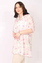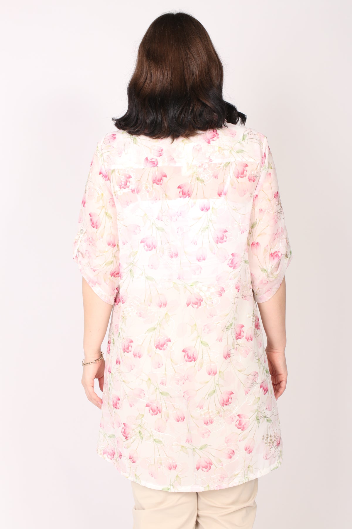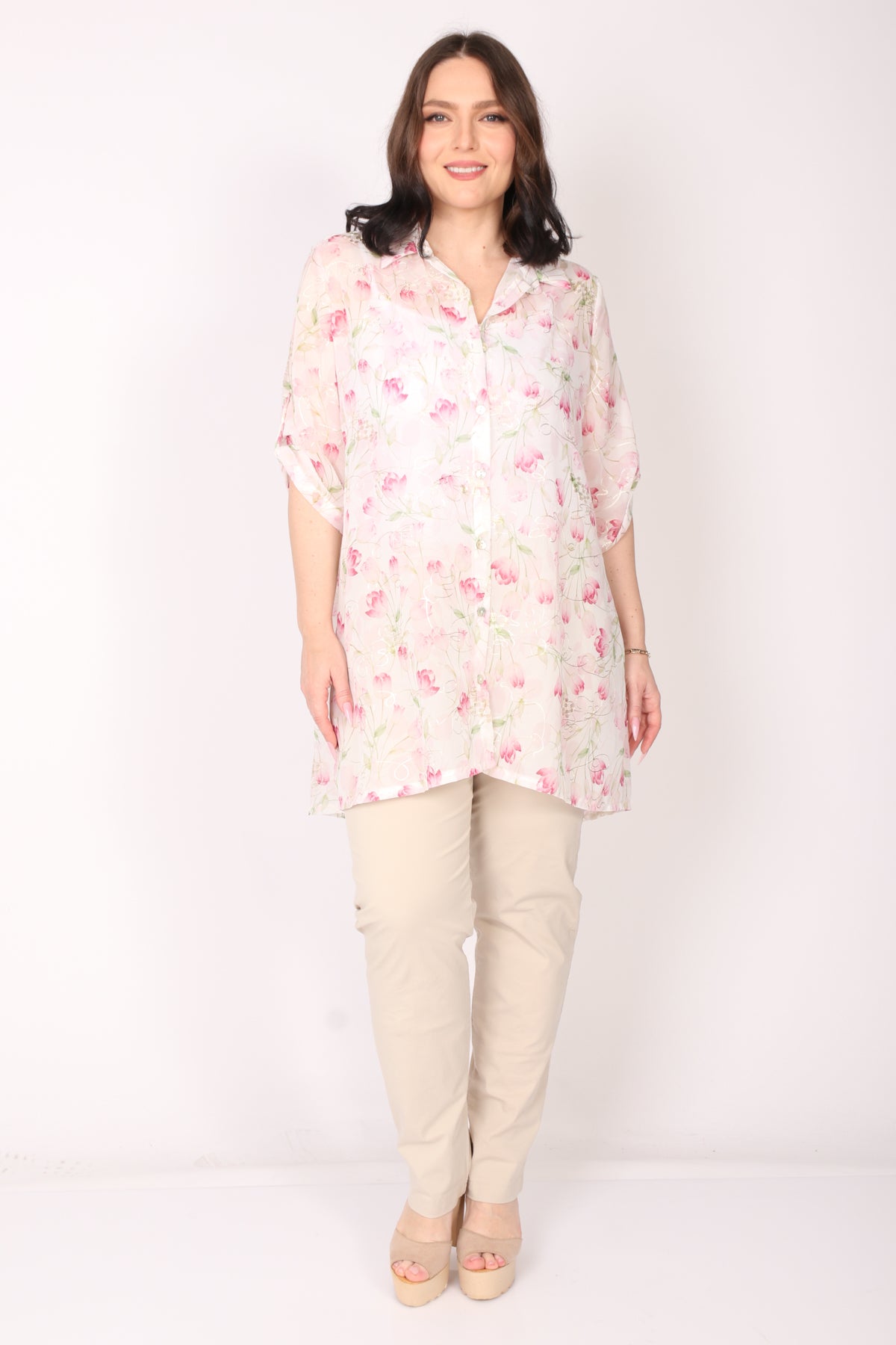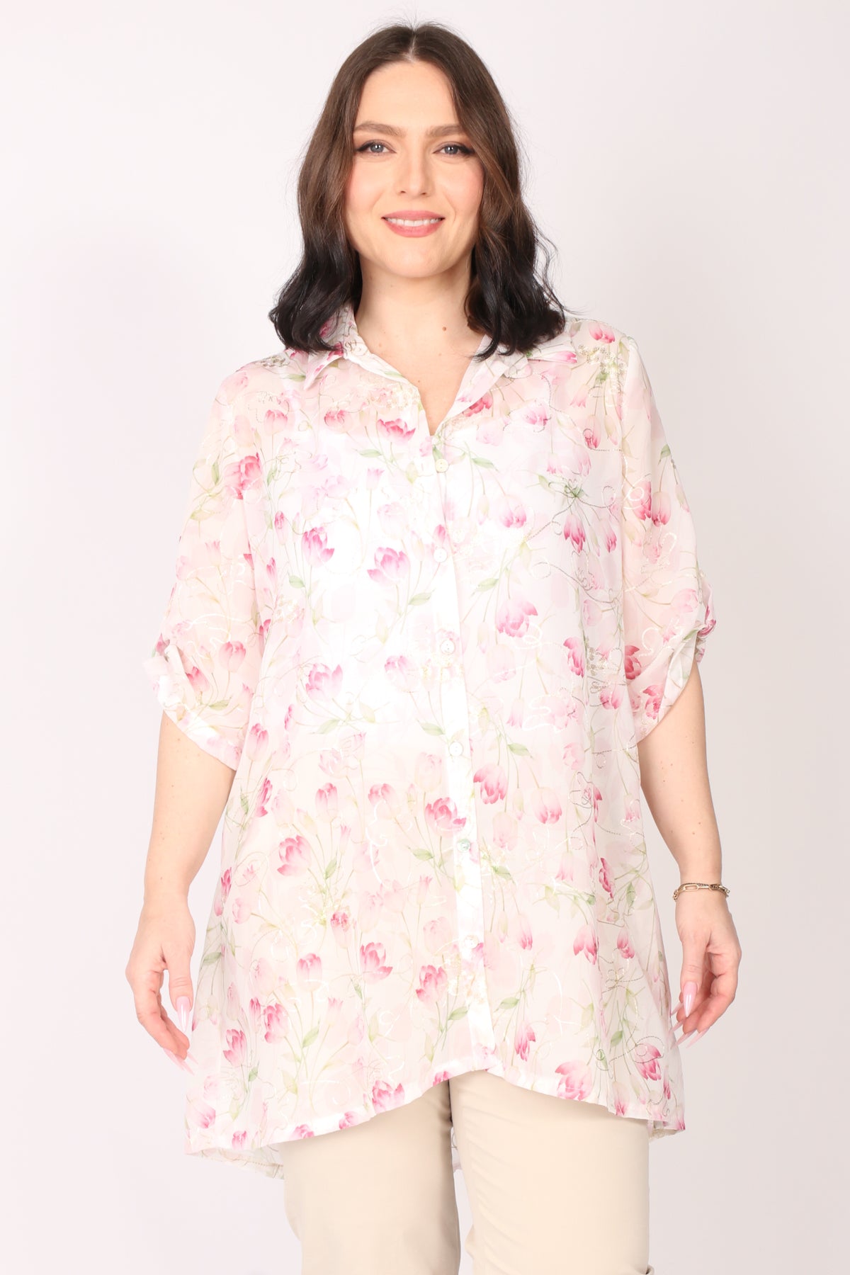 - עליונית מכופתרת מבד שיפון פרחוני בגזרה מתרחבת