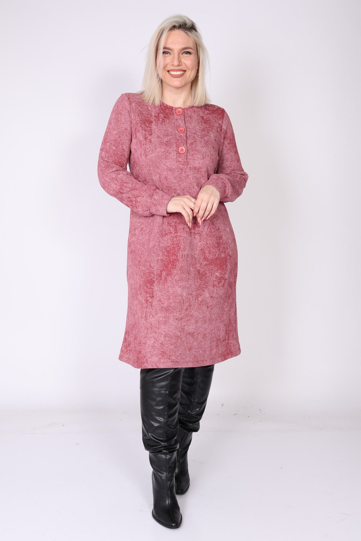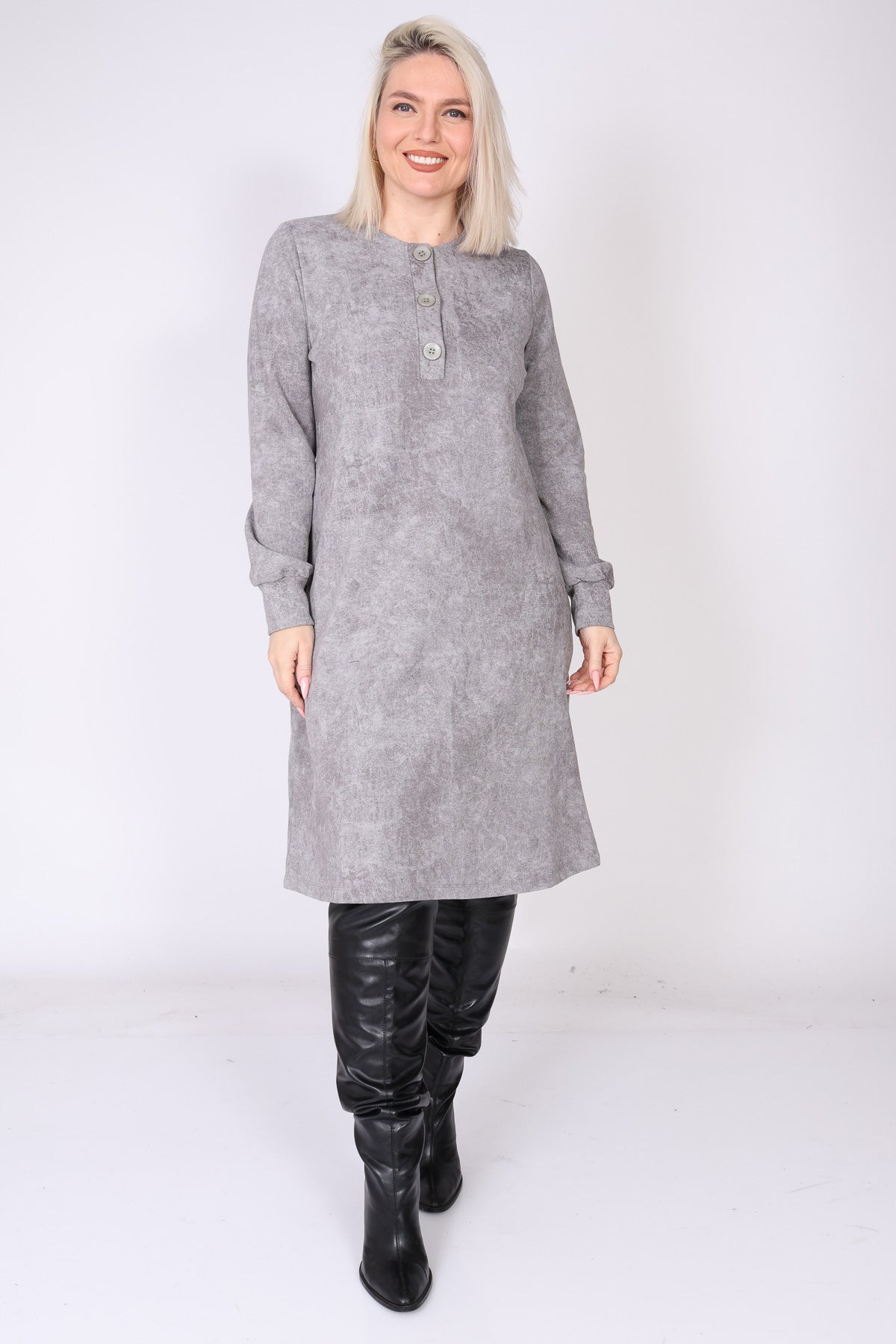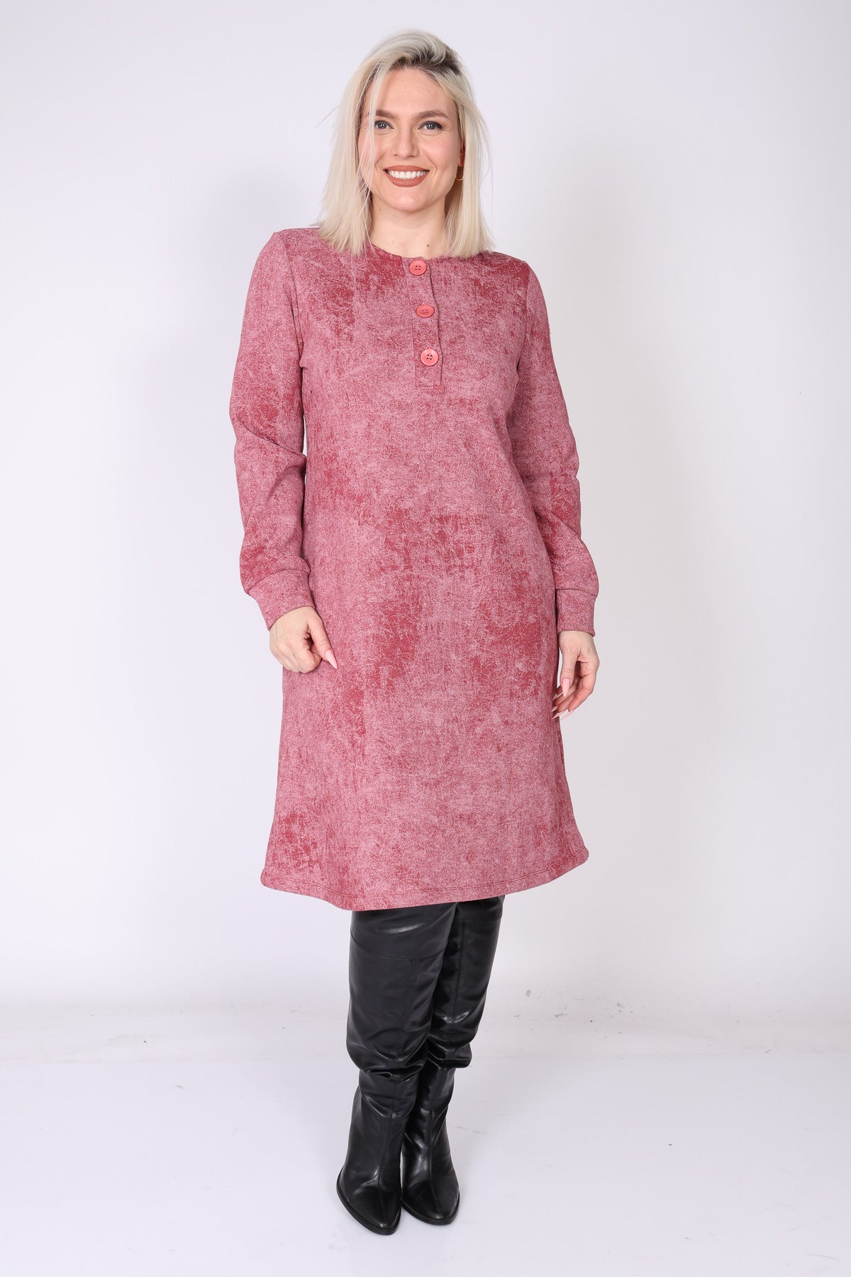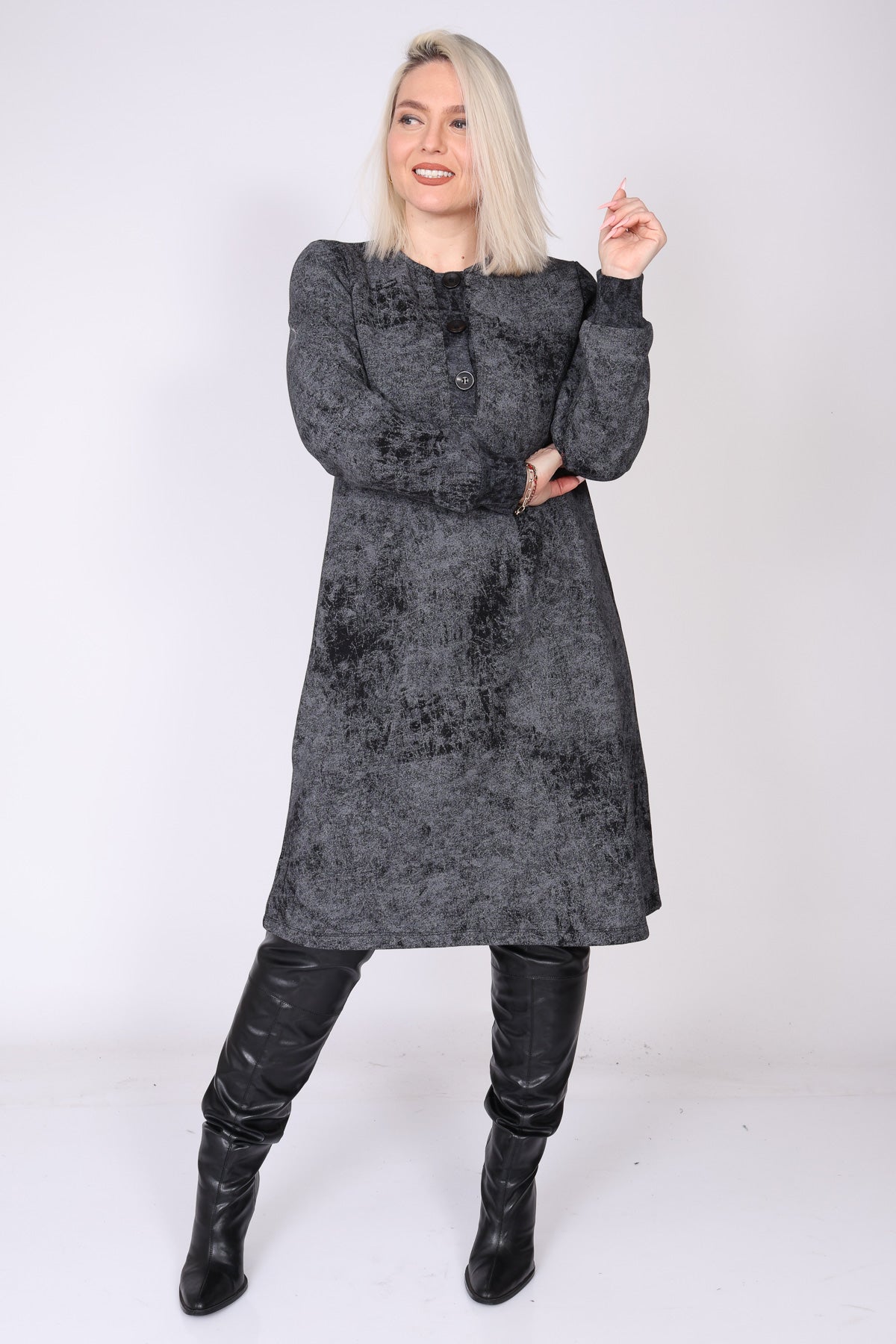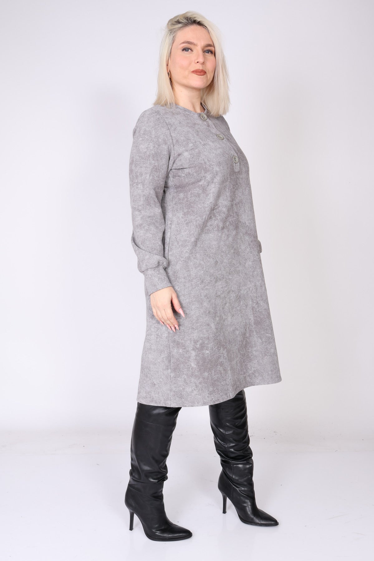 שמלת פוטר מבד בדפוס טאי-דאי רך, בגזרה שמתרחבת קלות ומעניקה מראה זורם ונינוח. שרוולים ארוכים ומפתח צוואר עגול עם סגירת כפתורים שמוסיפה נופך קלאסי ועדין, לשמלה שמרגישה נוחה וקלילה בכל יום.