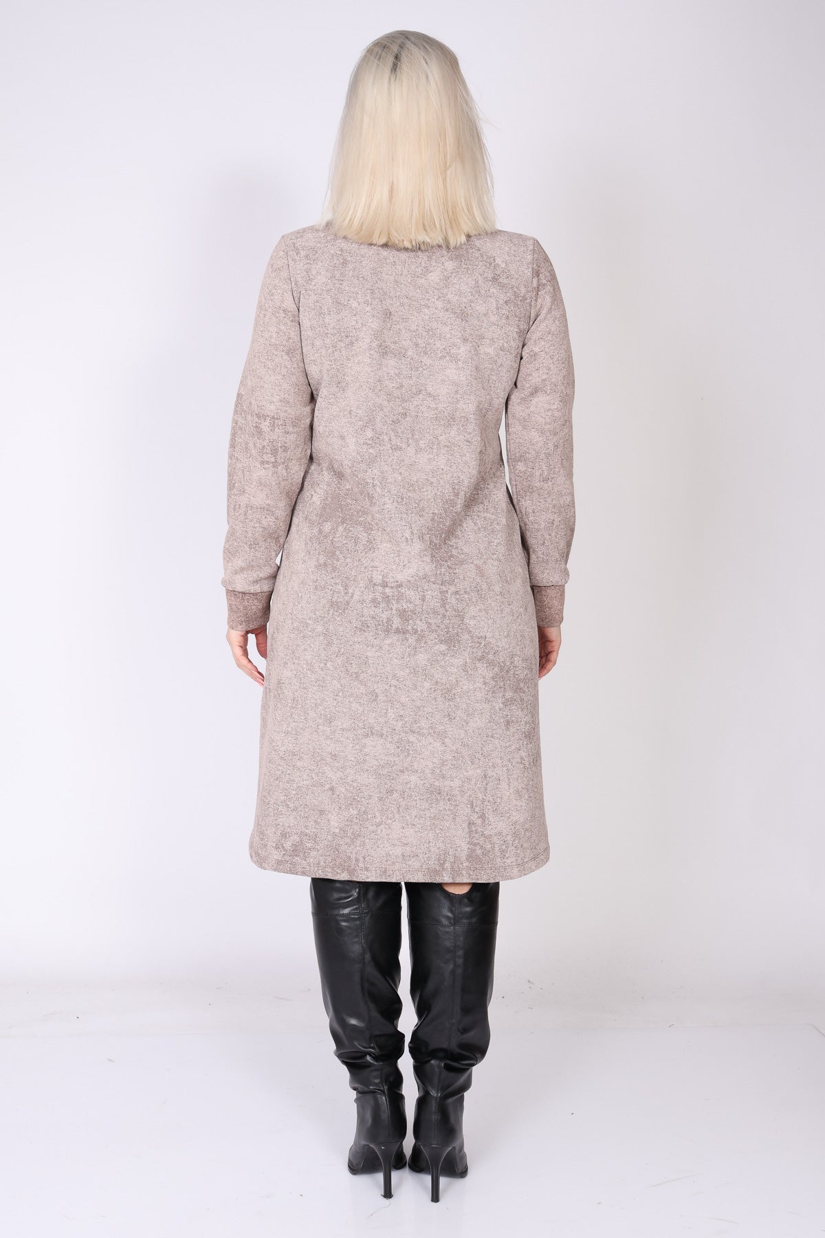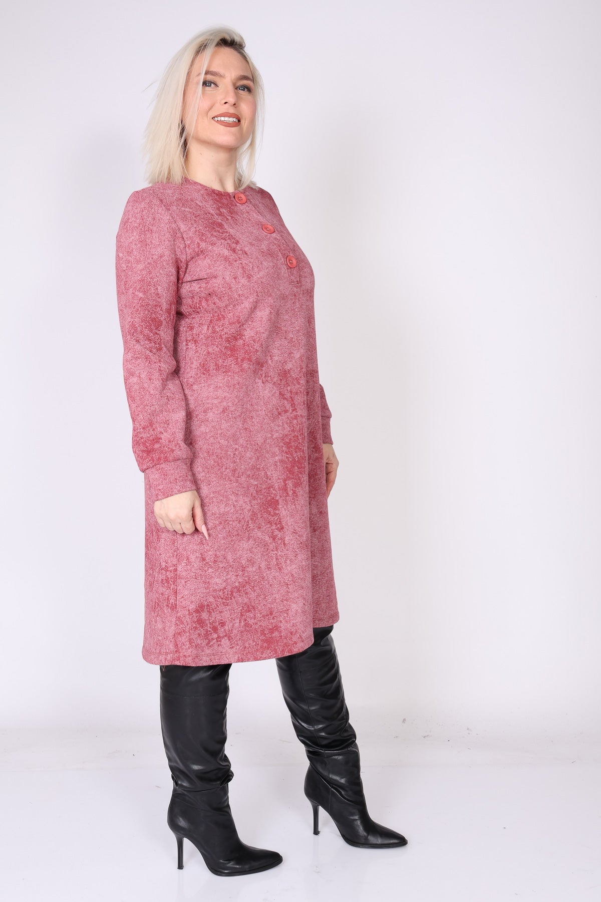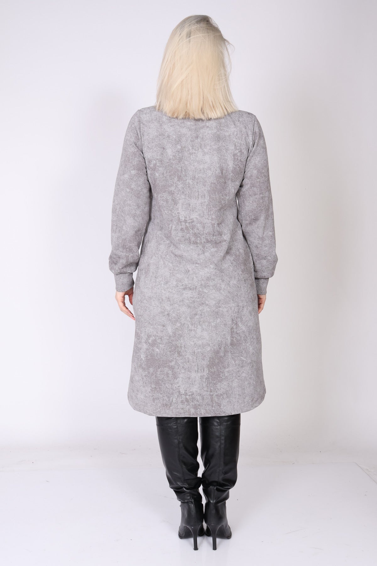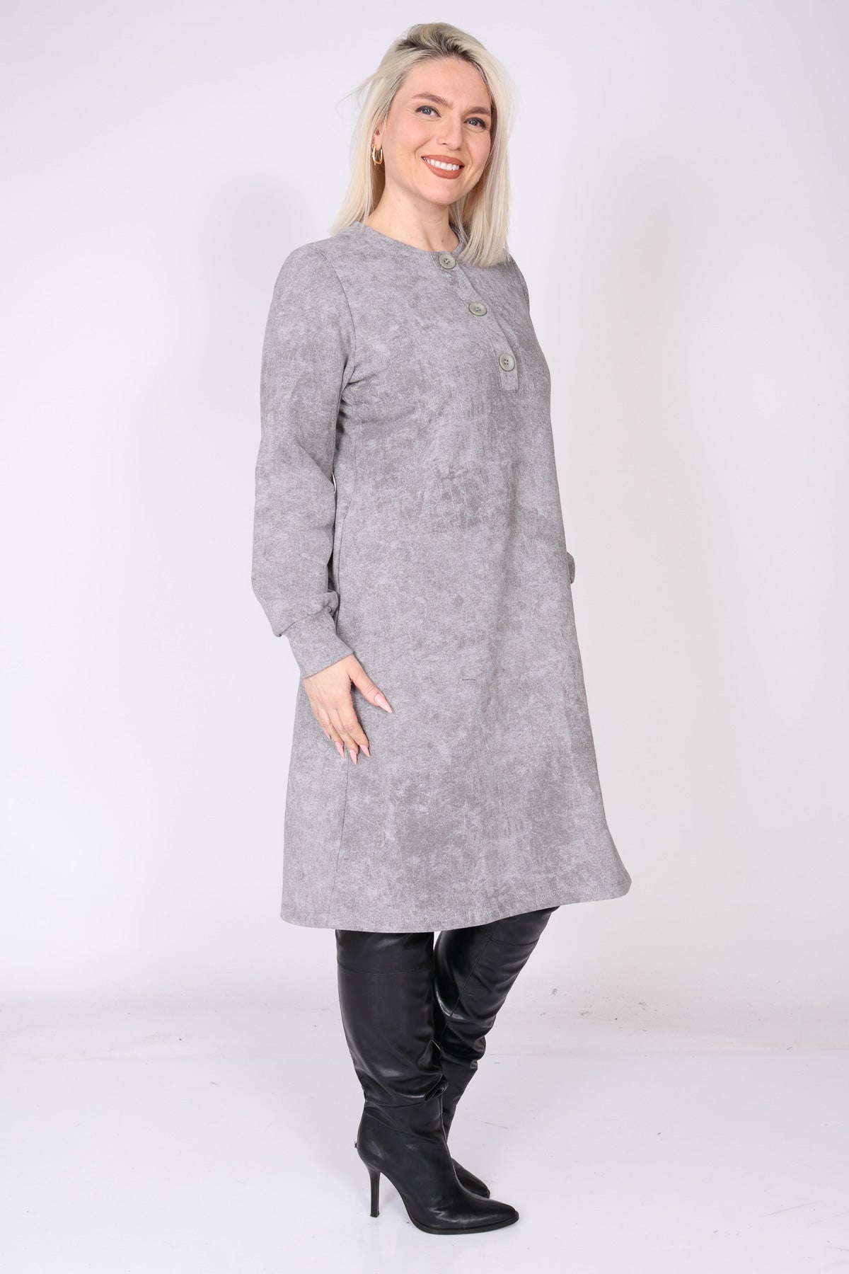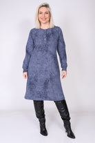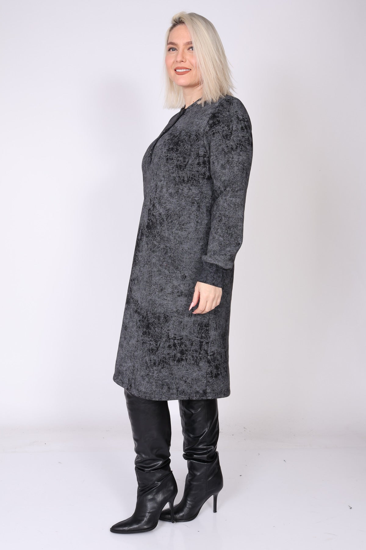 שמלת פוטר מבד בדפוס טאי-דאי רך, בגזרה שמתרחבת קלות ומעניקה מראה זורם ונינוח. שרוולים ארוכים ומפתח צוואר עגול עם סגירת כפתורים שמוסיפה נופך קלאסי ועדין, לשמלה שמרגישה נוחה וקלילה בכל יום.