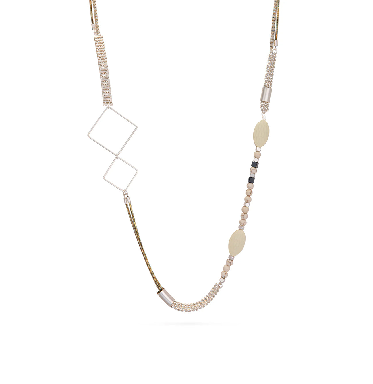 - שרשרת מצופה כסף בשילוב אבנים טובות בגוון פנינה