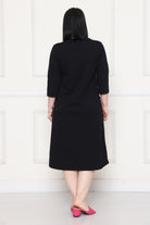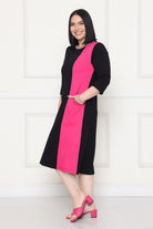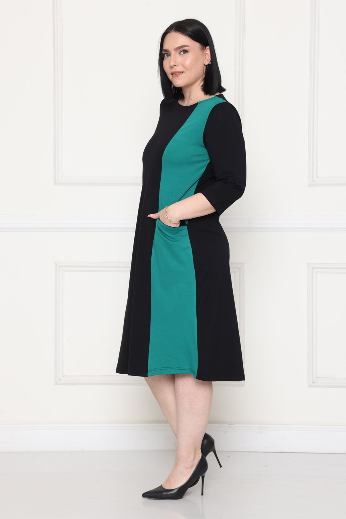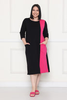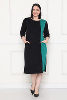 - שמלה בגזרה ישרה משולבת בד בצבע